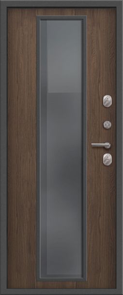Главная особенность двери – наличие терморазрыва, который препятствует образованию конденсата и промерзанию двери в холодное время года. Два контура уплотнения (трехкамерные) дополнительно повышают герметичность конструкции.