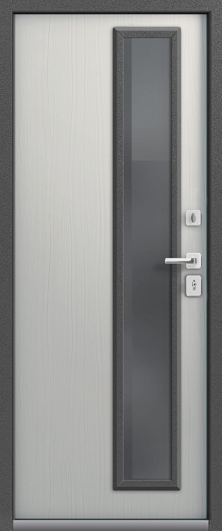 Внутренняя панель МДФ выполнена в двух цветах - ясень пепельный, ясень скандинавский. Стекло цвета Grey с низкоэмиссионным энергосберегающим покрытием, сохраняет тепло внутри дома и практически исключает теплопотери. Дверь Т-10 отлично впишется в любой интерьер и защит Ваш дом от холода