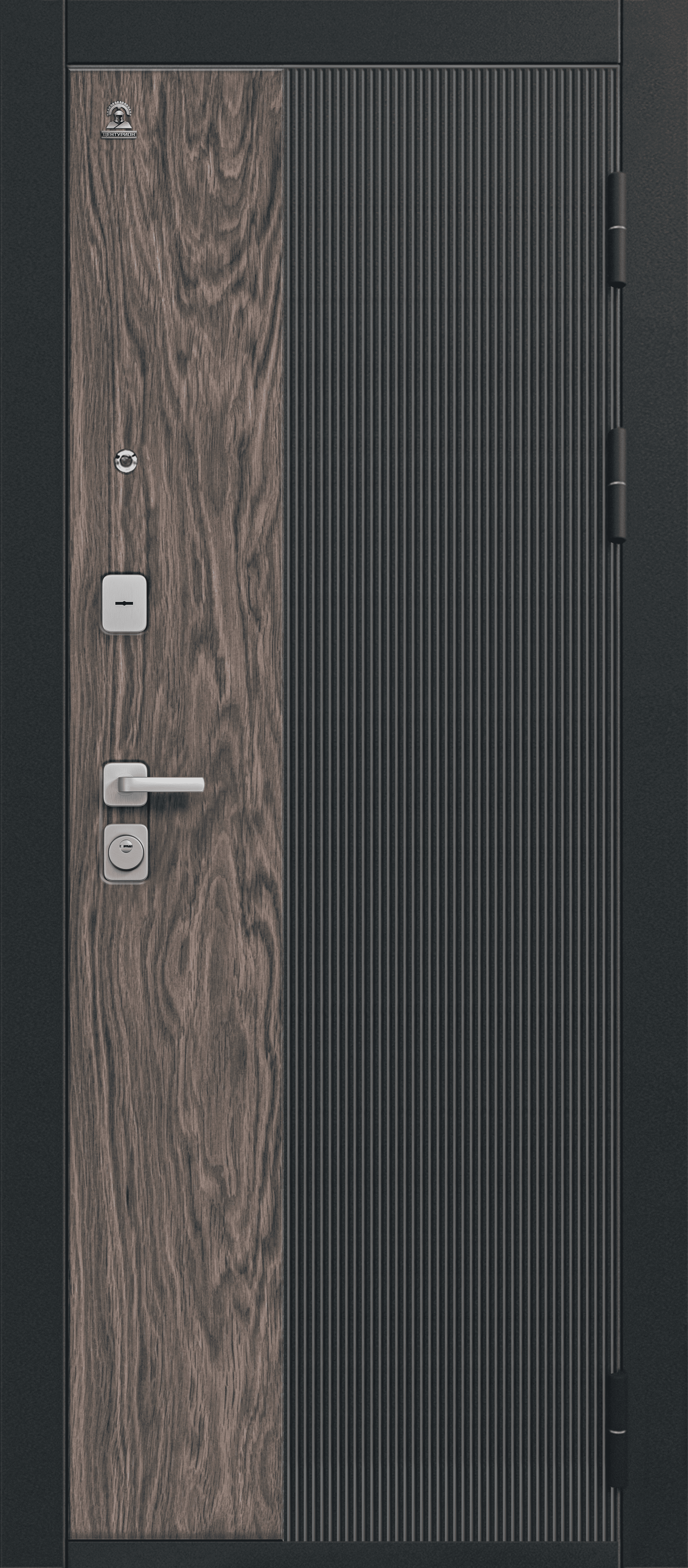 Данная модель имеет внешнюю дизайнерскую панель – сочетание черного цвета и имитации породы дерева. Это позволяет двери М-21 выглядеть стильно не только внутри, но и снаружи. В качестве внутренне панели устанавливается дверная накладка клиента.В качестве наполнителя - пенополистирол – современный материал, оптимальный по показателям -тепло и шумоизоляции.