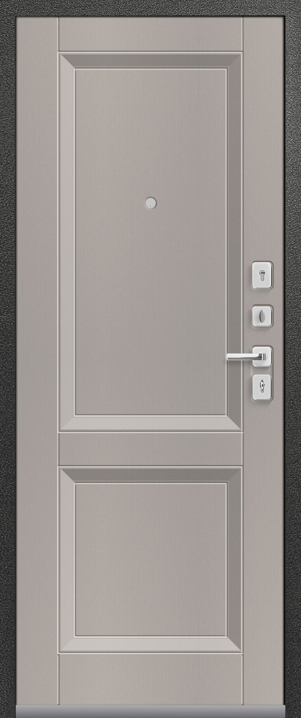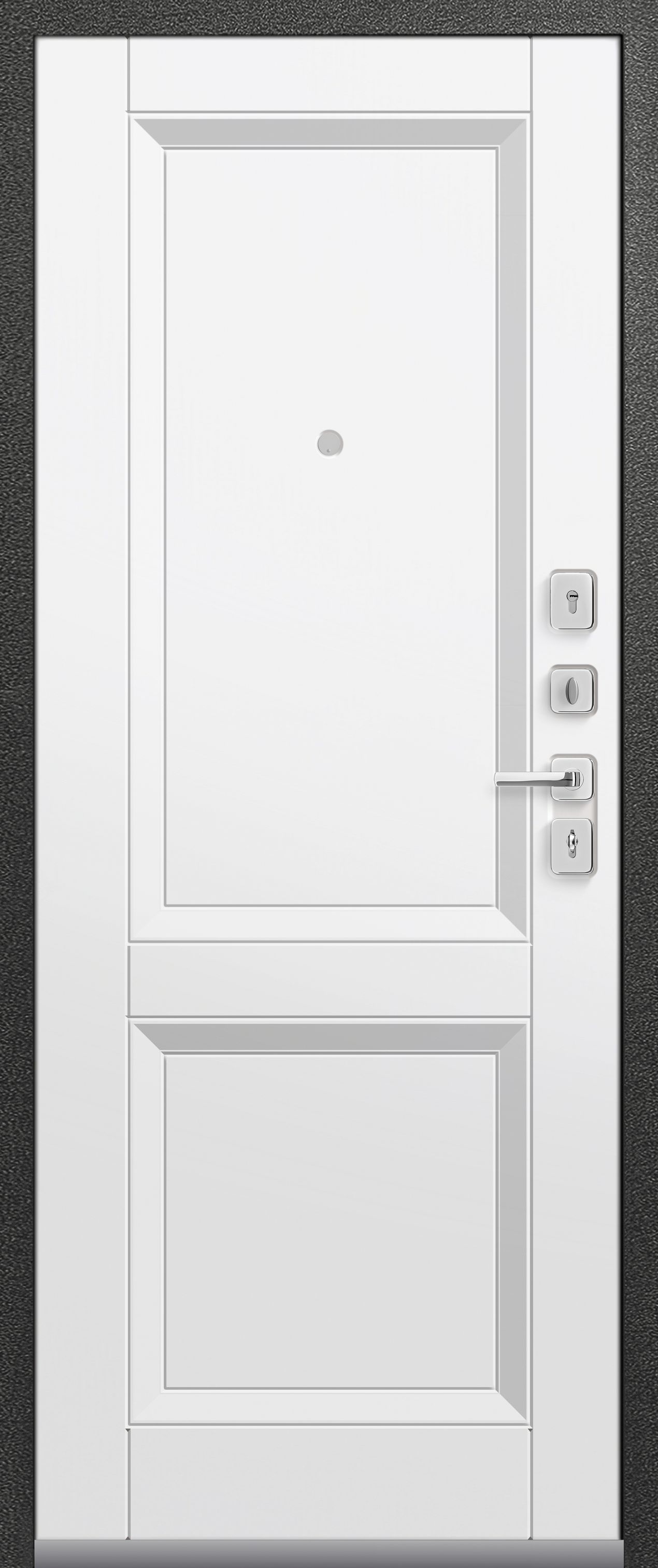 Дверь изготовлена из высокопрочной листовой стали с увеличенной толщиной и двухслойным антикоррозийным покрытием. Конструкция короба - цельногнутая. Это делает ее не только одной из самых крепких и безопасных, но еще и долговечной. Вместо двух петель мы используем три, что в сочетании с тремя противосъемными штырями делают взлом через петли практически невозможным.