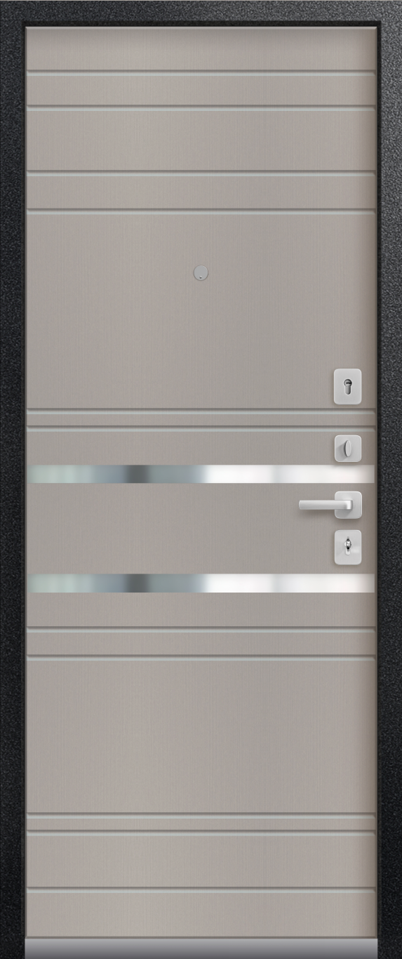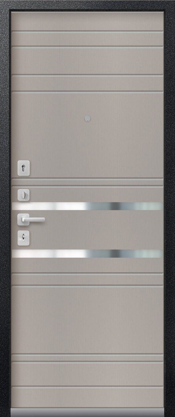 Цилиндровые замки Гардиан – 32.01 (4 класс) и 32.11 (4 класс) Особенностью данной модели является - вставка молдинг металлический на внутренней панели. Цветовая гамма пленок на внутренней панели позволяет вписать дверь в любой интерьер. Внешняя панель выполнена из МДФ цвета «Кашемир белый» и «Кашемир грей» имеет современную фрезеровку. Все эти детали влияют на стиль квартиры.